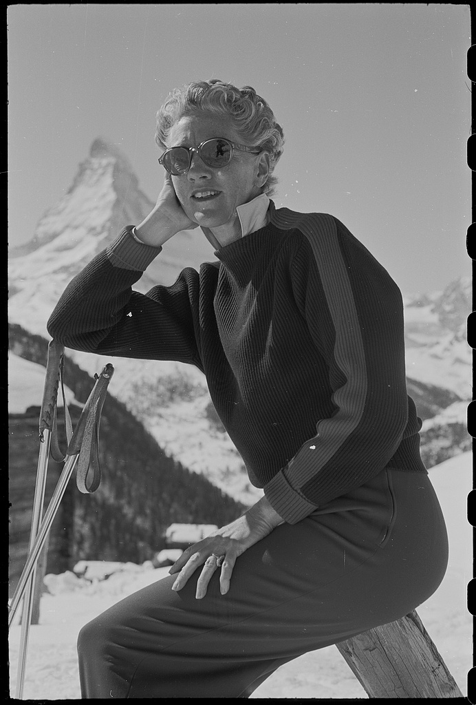 Vogue photographer Toni Frissell poses by the Matterhorn, est. 1940s © Toni Frissell from Wikimedia Commons