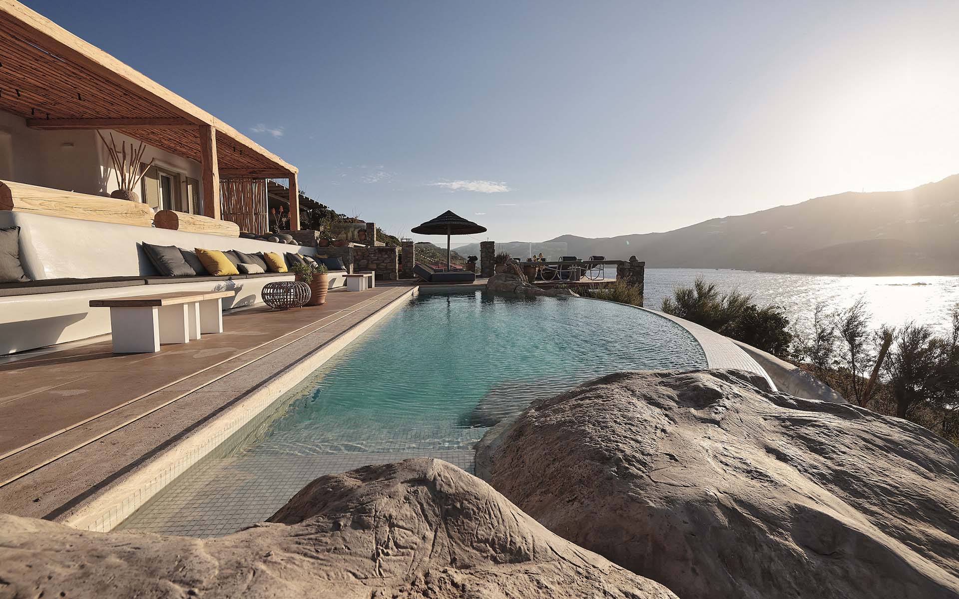 With sweeping, sun-drenched views across Ftelia Bay and the headland beyond, a stay at this luxury…