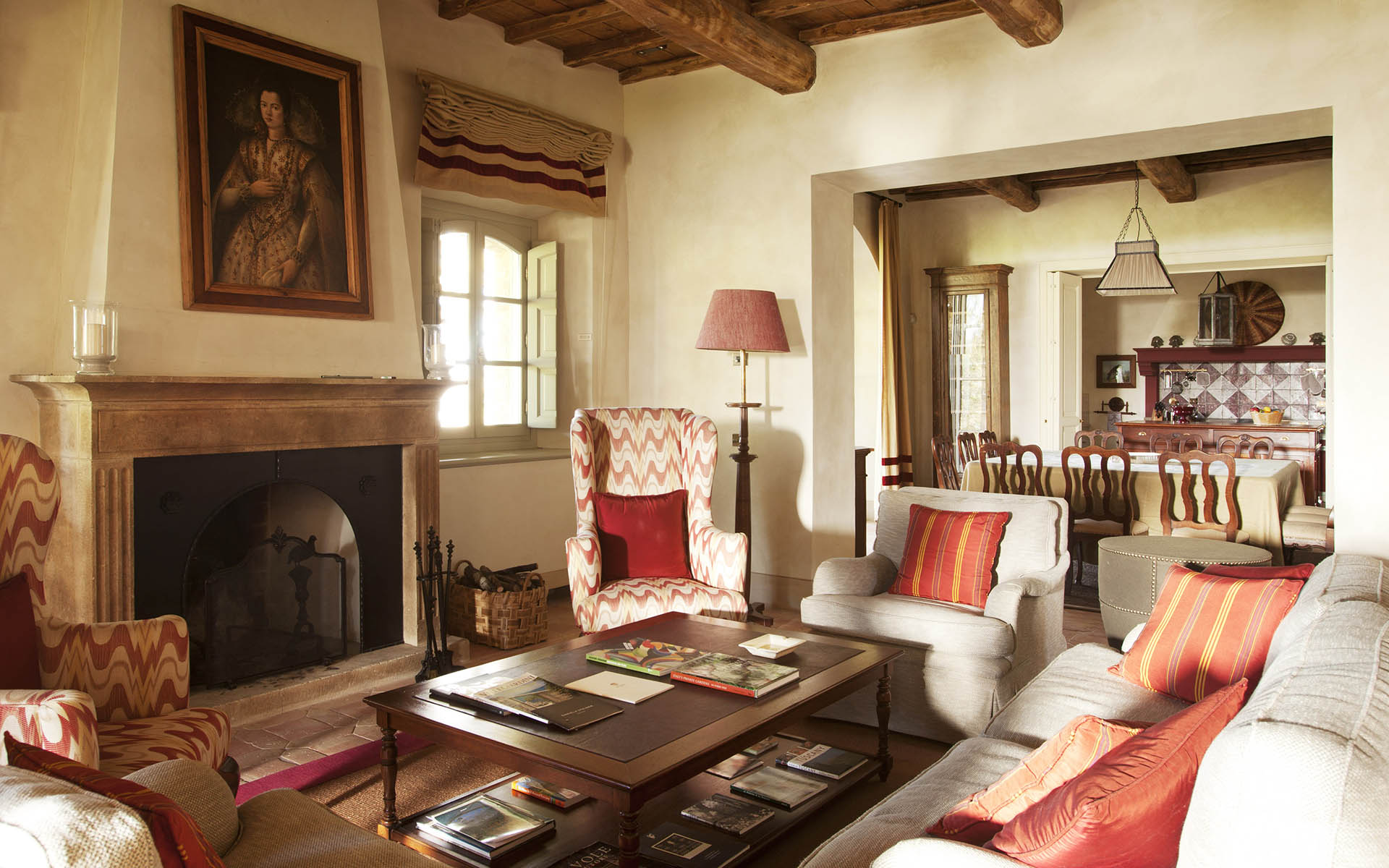 Inside, the luxury villa sleeps ten comfortably and has contemporary-rustic living spaces that offer cool shade and plenty of comfort. The living room wingback chairs and sofas are gathered around a welcoming Tuscan fireplace, and a refectory-style dining table allows you all to eat inside together if you wish. There’s even a reading room where you can while away an afternoon in the peace and quiet with a pile of books.