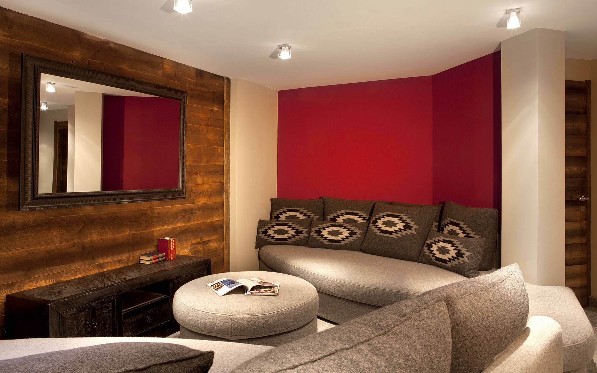 The silver and white living space, overlooked by the roaring fire, has high-backed sofas and armchairs for extra cosines as well as superb views of the mountains. It’s a fabulous spot in which to relax with friends over drinks in the evenings as you catch up on the day’s events. The cinema room gives you all a more laid-back place to chill out with beers and a films, or why not hold your own movie matinée, complete with hot chocolate and popcorn? Nearby, the sophisticated wood-clad dining room with fabulous paintings on the walls gives dinner an air of the stately home.