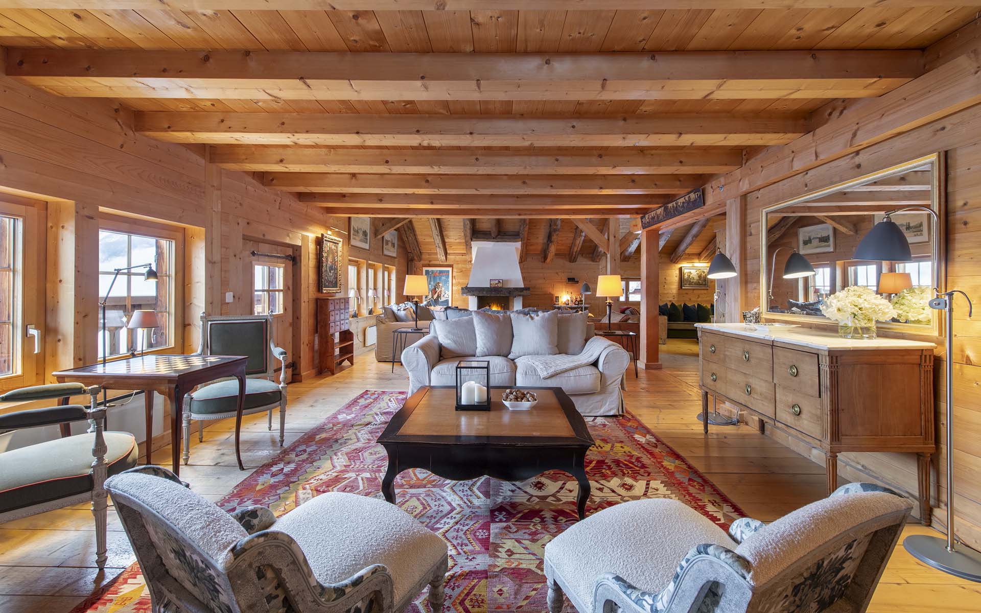 When the snow’s falling outside there’s nowhere quite as cosy as the interiors of Chalet Bavaria. This luxury ski chalet in Verbier is a beautiful bolthole full of home comforts and has a warm welcome for all. Wood-clad walls, colourful rugs and a roaring fire set the bar high for cosiness.