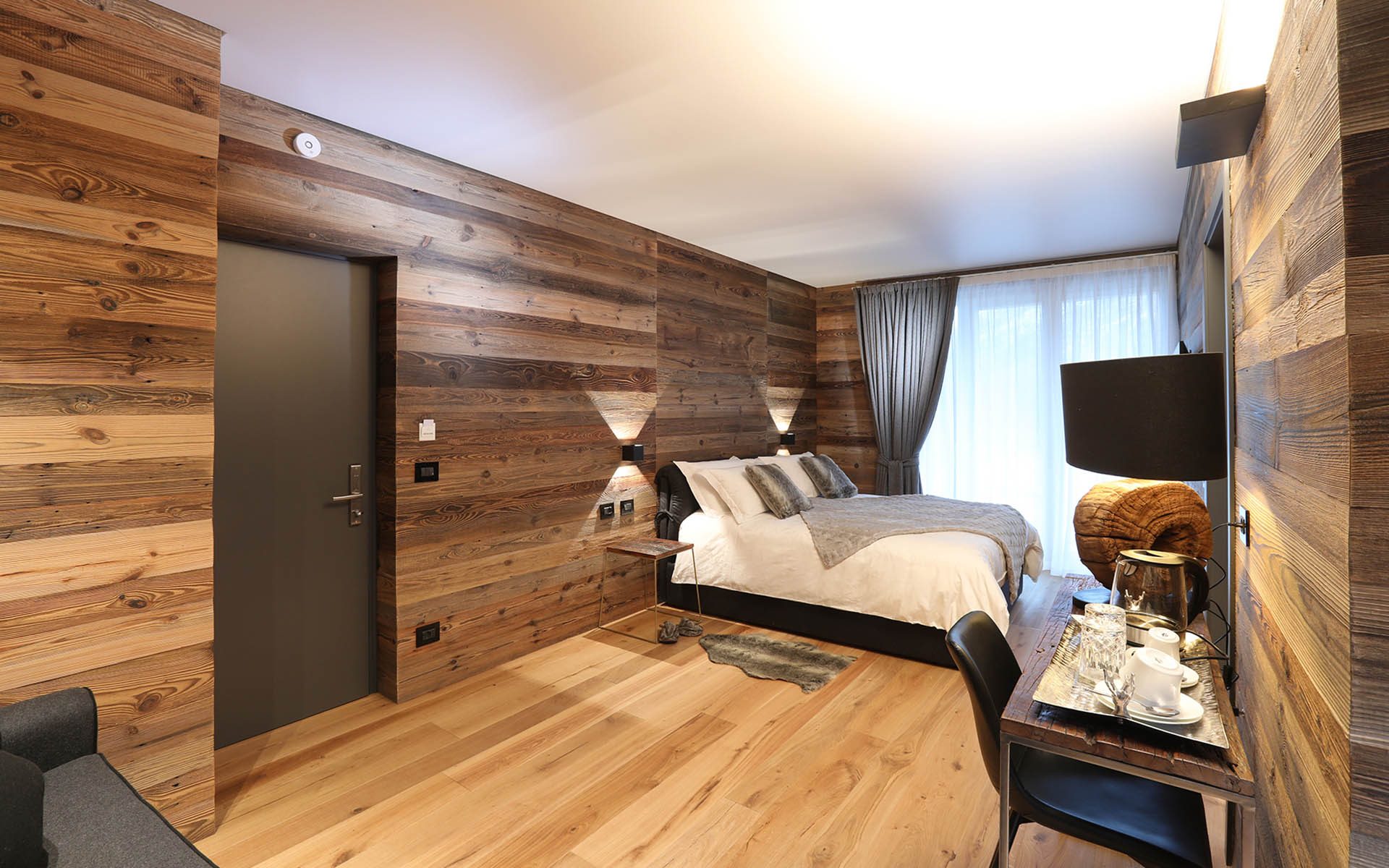 Bedrooms all come with a minibar and Nespresso machine, TV and ensuite bathroom featuring Acqua di Parma products. Each room also has a private balcony so you can throw open the doors and enjoy coffee in bed, taking in the fresh mountain air and snowy scenes. For extra space, sister property Petit Chalet Blanc provides two additional bedrooms.