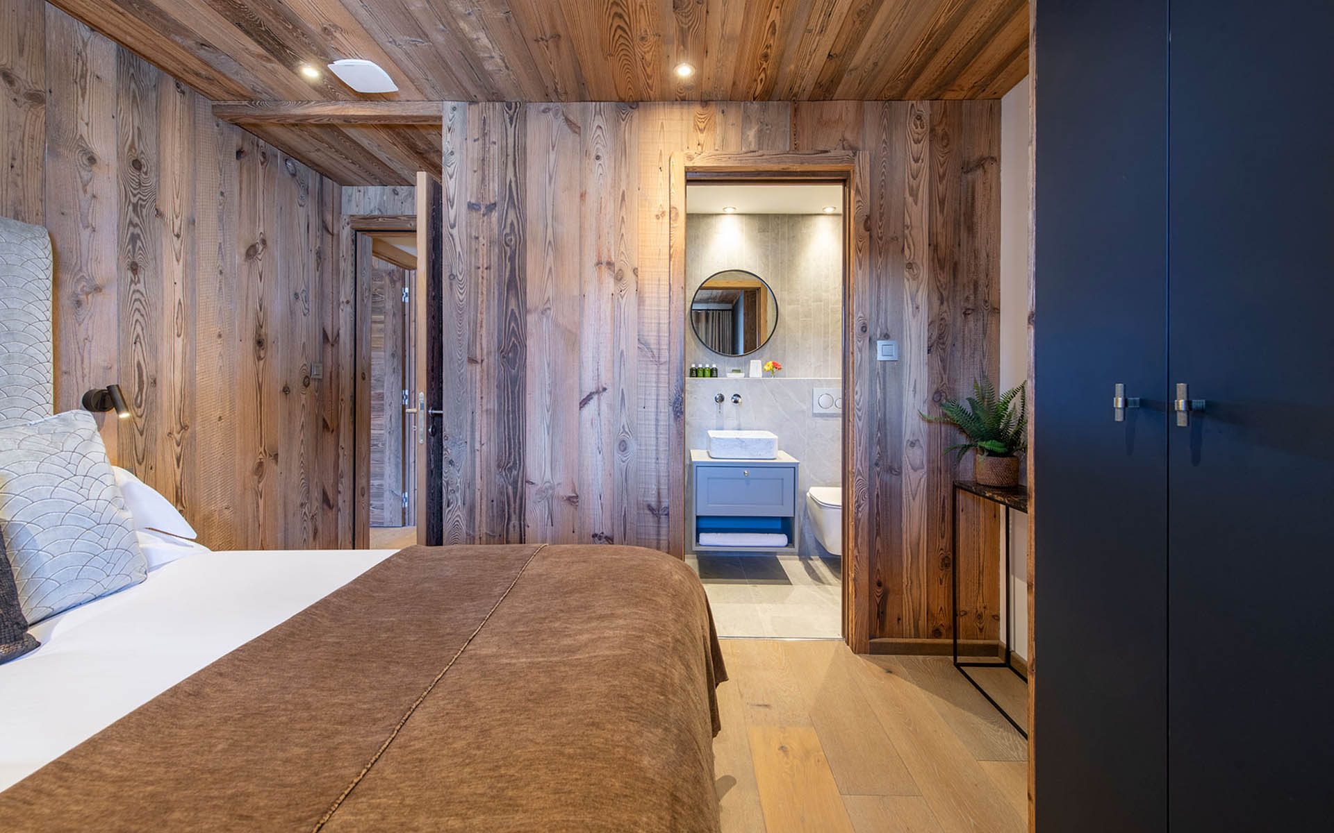 Throughout the chalet the décor is stylish and contemporary, and everything has been finished to the highest standard. In the living areas, bright blue features have been used to bring vibrancy to the otherwise neutral colour palette, which features lots of beautiful natural materials such as marble, wicker and exposed timber. Huge glass windows and doors stretch from floor to ceiling and fill the space with light – and of course those epic mountain vistas. Meanwhile, in the bedrooms, the décor is similarly elegant, with calming colours and hotel-quality soft furnishings that’ll make it hard to get out of bed in the morning.