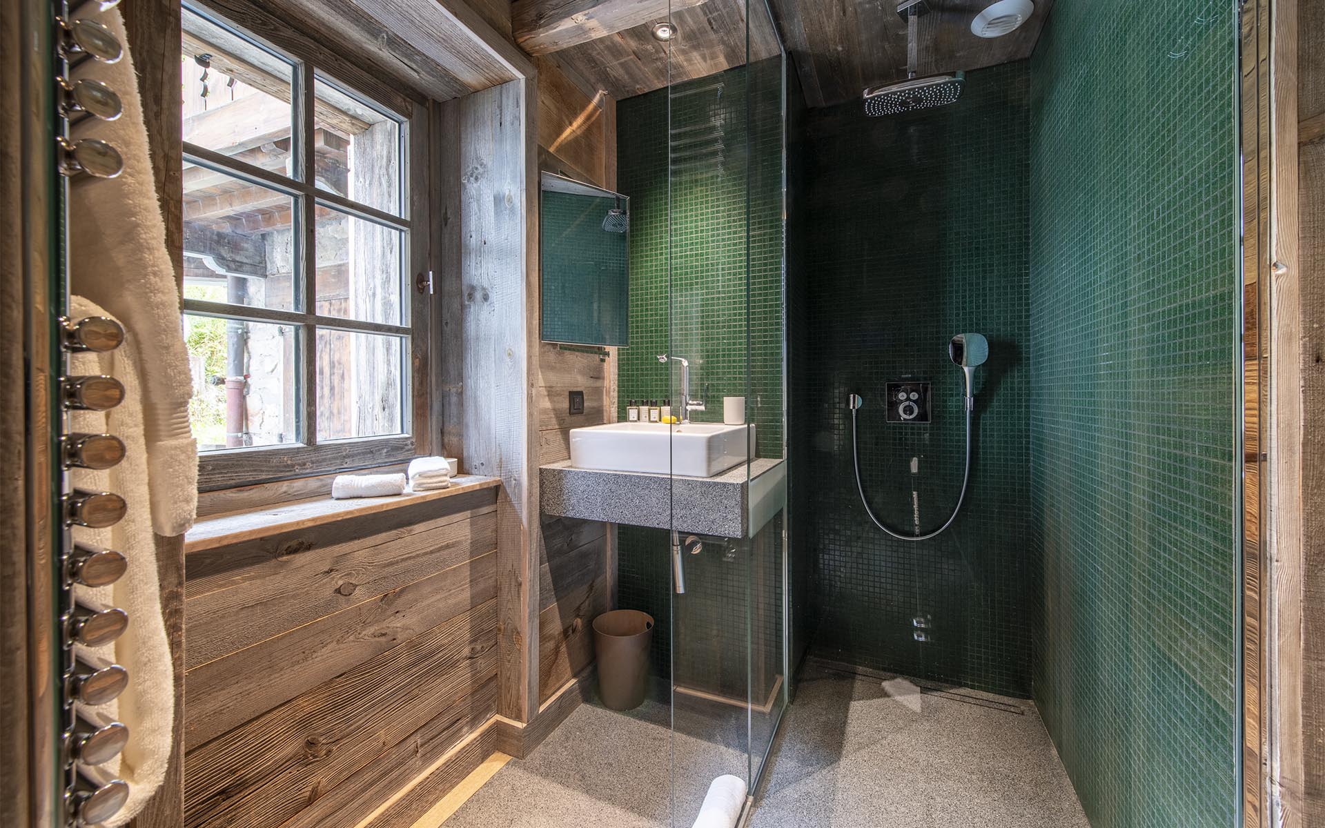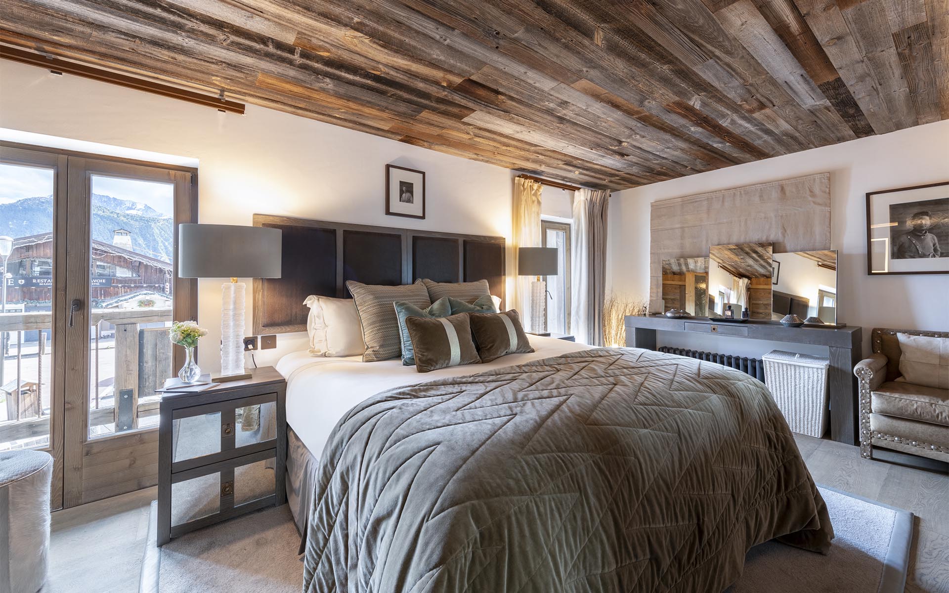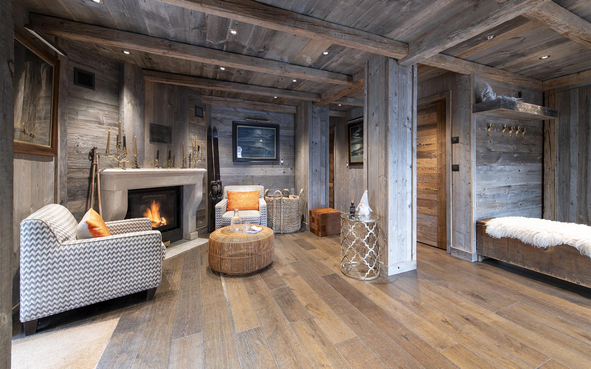 This state-of-the-art self-catered chalet is split over 5 floors and has 6 bedrooms. Modern in décor, it’s a mix of contemporary neutral tones and grey wood. The main living area is dominated by the room’s low, up-lit eaves and chunky beams that make it feel cosy and intimate despite its wealth of space. Here you can sink into the wraparound sofa by the open fire with a mug of hot chocolate and a good book.