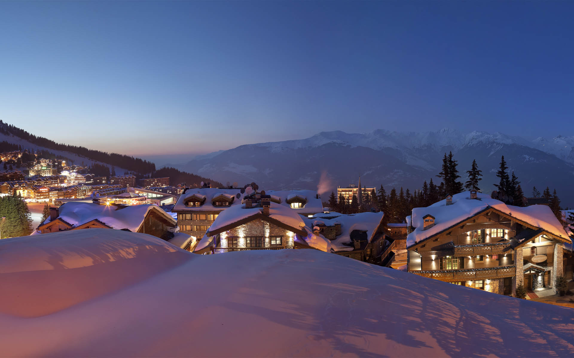 Chalet Ormello is right beside the Bellecote piste in Courchevel 1850, accessed via a few steps across the road.