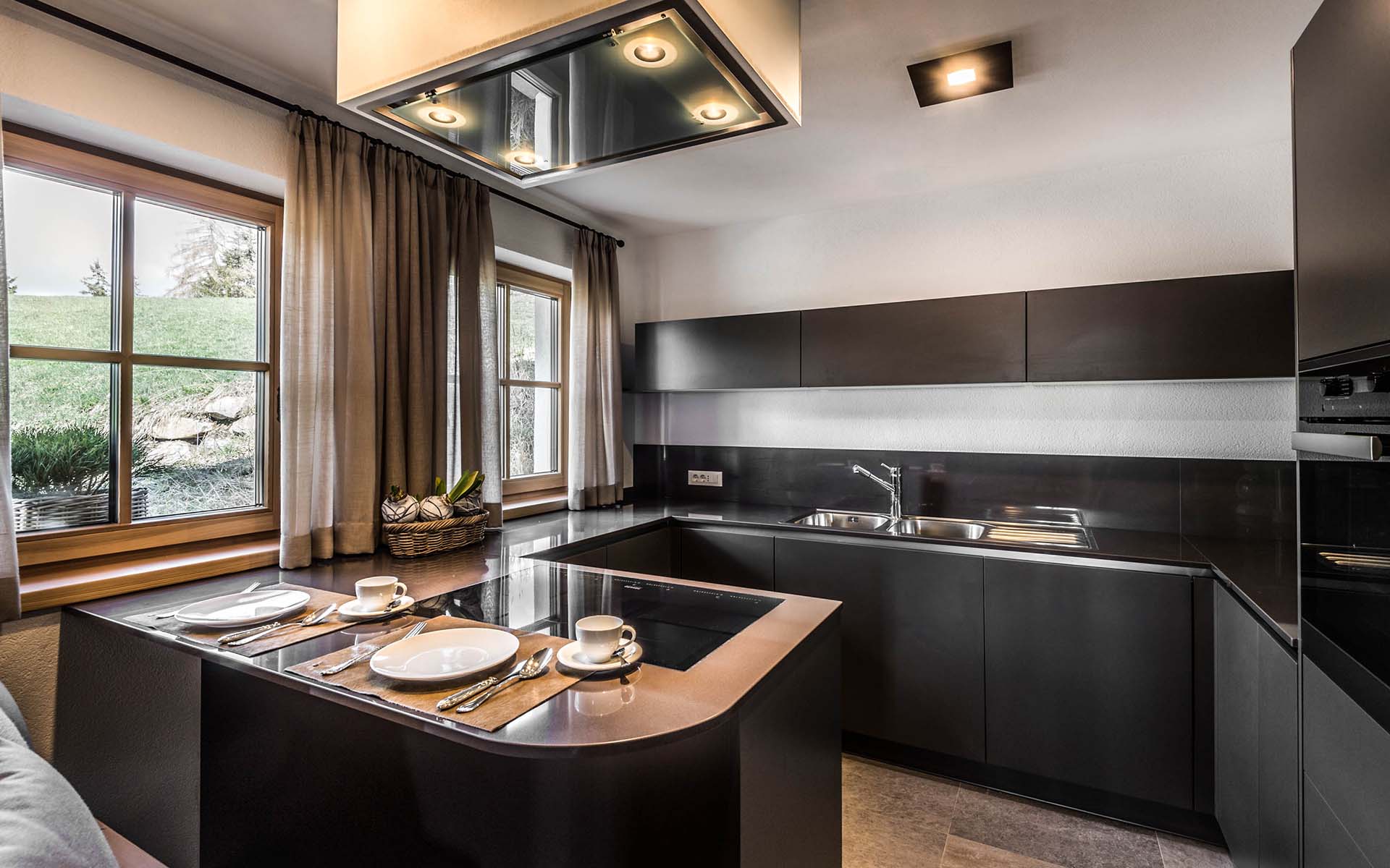 Chalet Pia is a luxury self-catering chalet in the Dolomites with all the gadgets and equipment you could need. The well-equipped kitchen has a Liebherr fridge and Miele dishwasher as well as microwave, oven and six-plate hob, allowing you to easily cater for a crowd. The traditional wooden ‘stube’ or parlour has several tables, allowing you all to eat in a sociable manner in small groups.