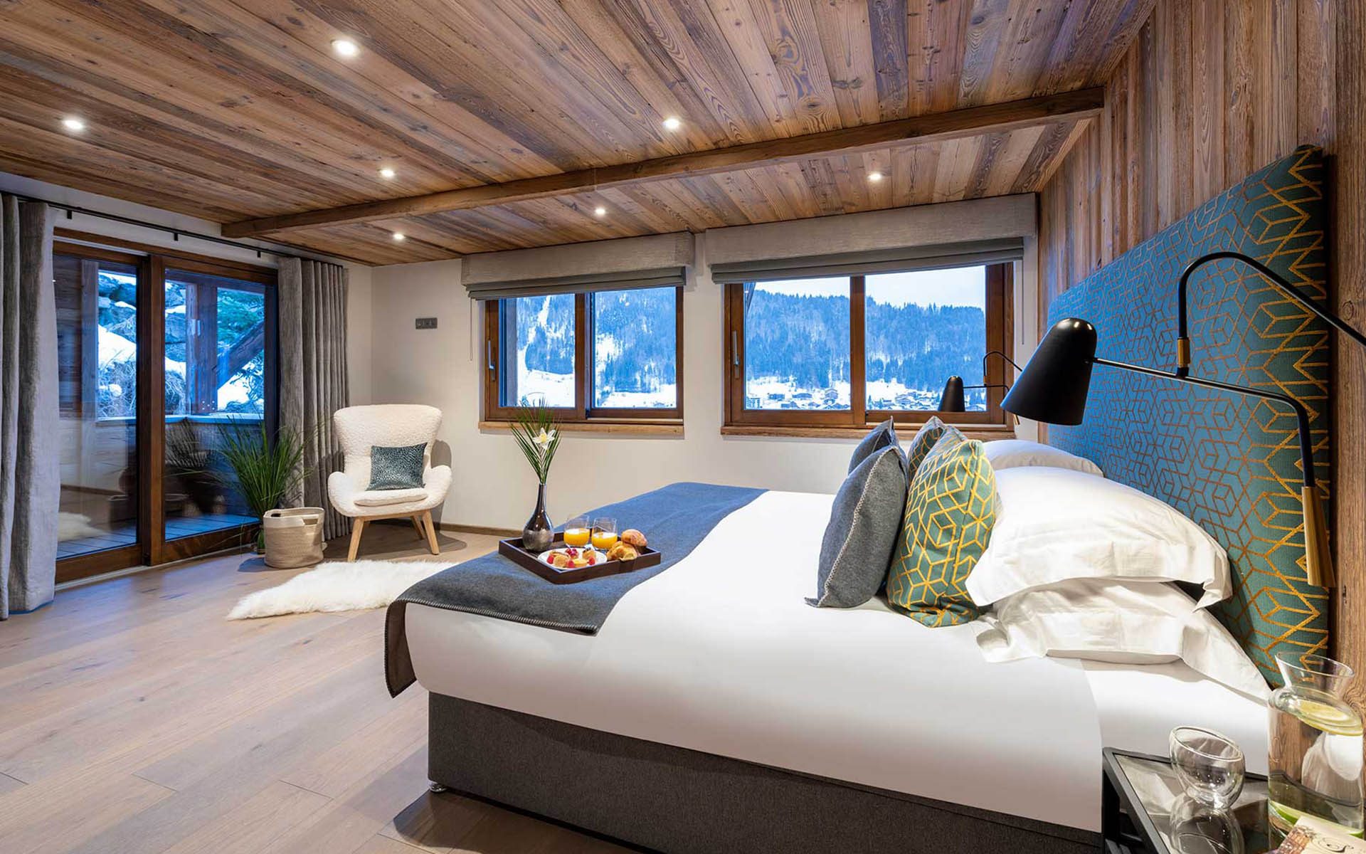 Leave your ski gear down in the boot room and head up to the chalet where you’ll first find the bedrooms. There is a master suite with an en-suite bathroom, perfect for soaking tired legs after the slopes, plus a second spacious, en-suite bedroom and a kid-friendly en-suite bunk room. Crucially, all of the bedrooms are beautifully decorated and each has access to a balcony, so you can enjoy morning mountain vistas as soon as you wake up.