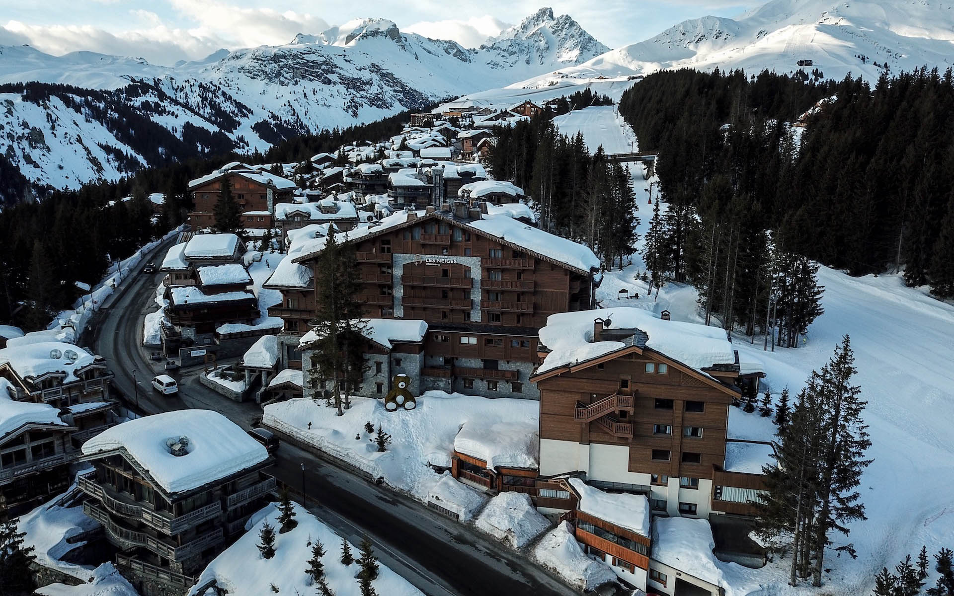 L’Appartement Les Neiges is located on the top floor of the Hôtel Barrière Les Neiges, right on the Bellecote piste with ski-in/ski-out access in Courchevel 1850.