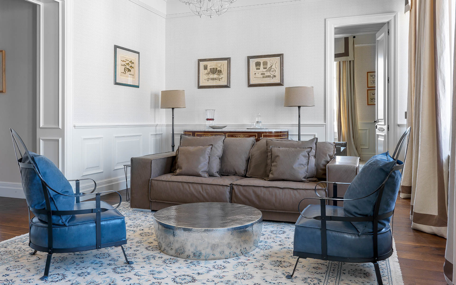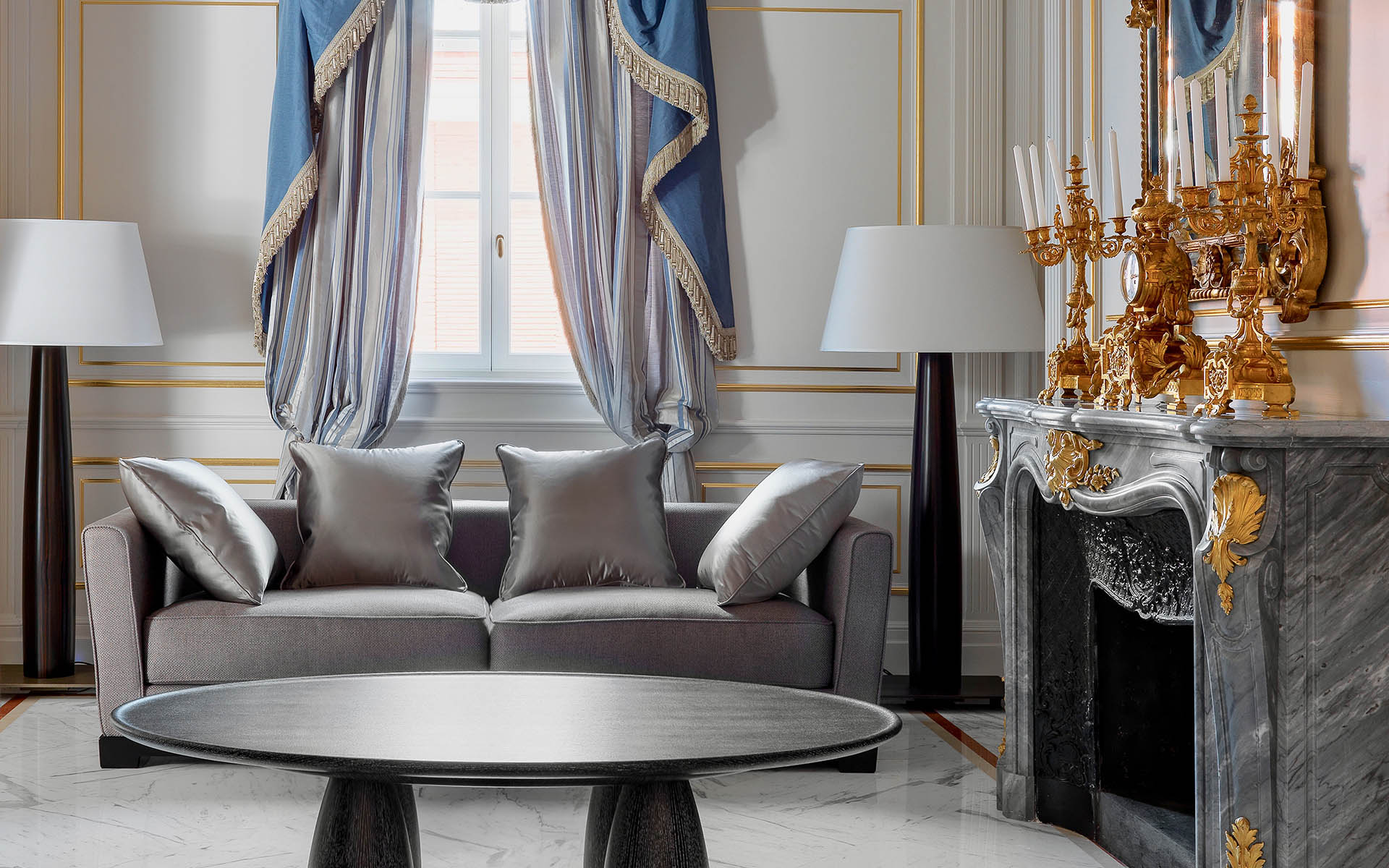 The interiors of this beautiful building have been designed with the greatest of care: a neutral but luminescent palette of gold, grey, pearl and ivory allows every corner of the property to shine. Natural, sumptuous fabrics bring ultimate comfort. You’ll want to sink into every armchair and sofa and stay there for ever.