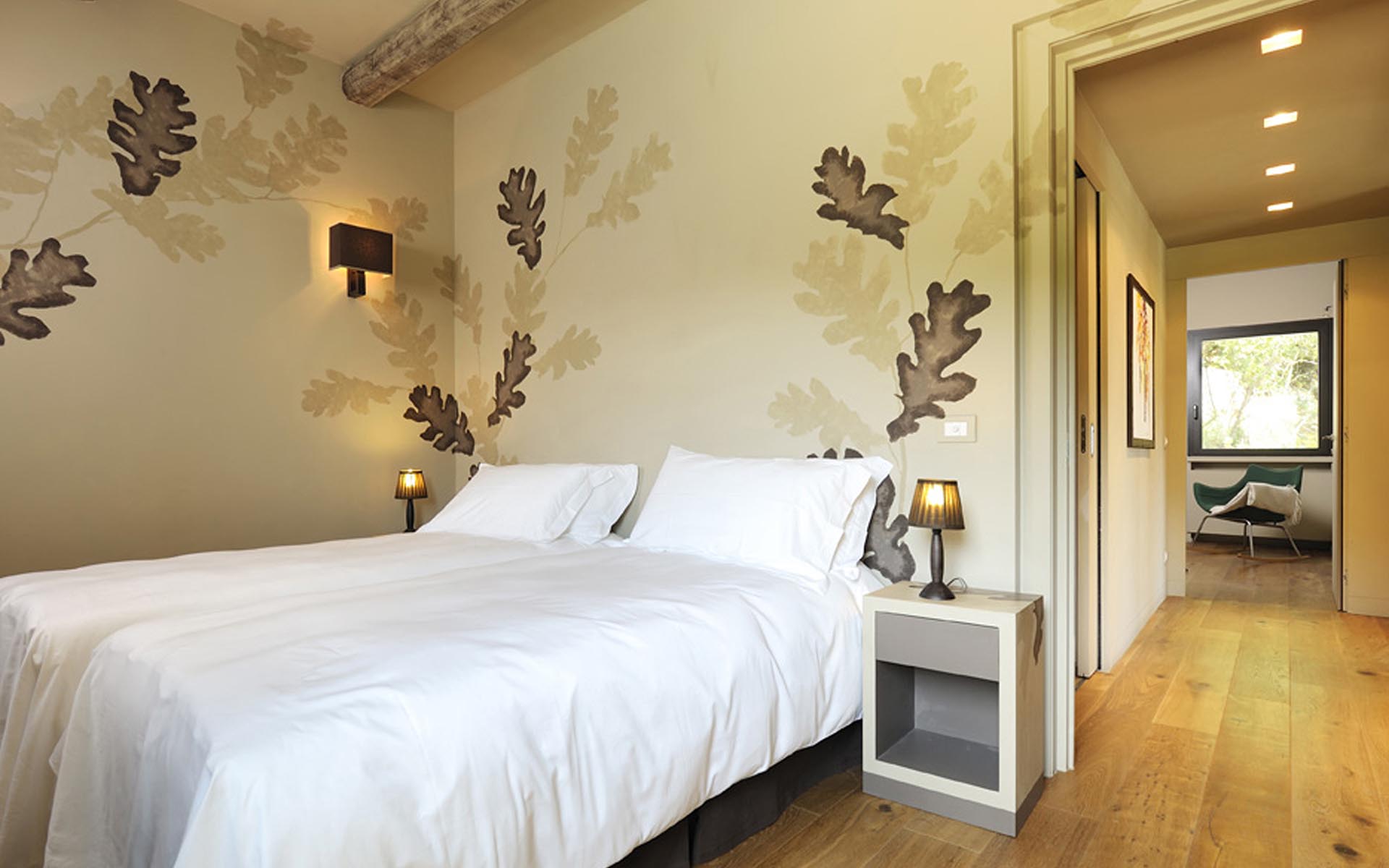 Villa Aura is a luxury villa in Tuscany that combines the lure of the Italian sun with the charm of a modern English country cottage. A woodland theme runs throughout the villa, with silhouetted trees and leaves on the walls, bringing a relaxed, calming feel to the neutral interiors. Artworks throughout give this property a unique and homely atmosphere.