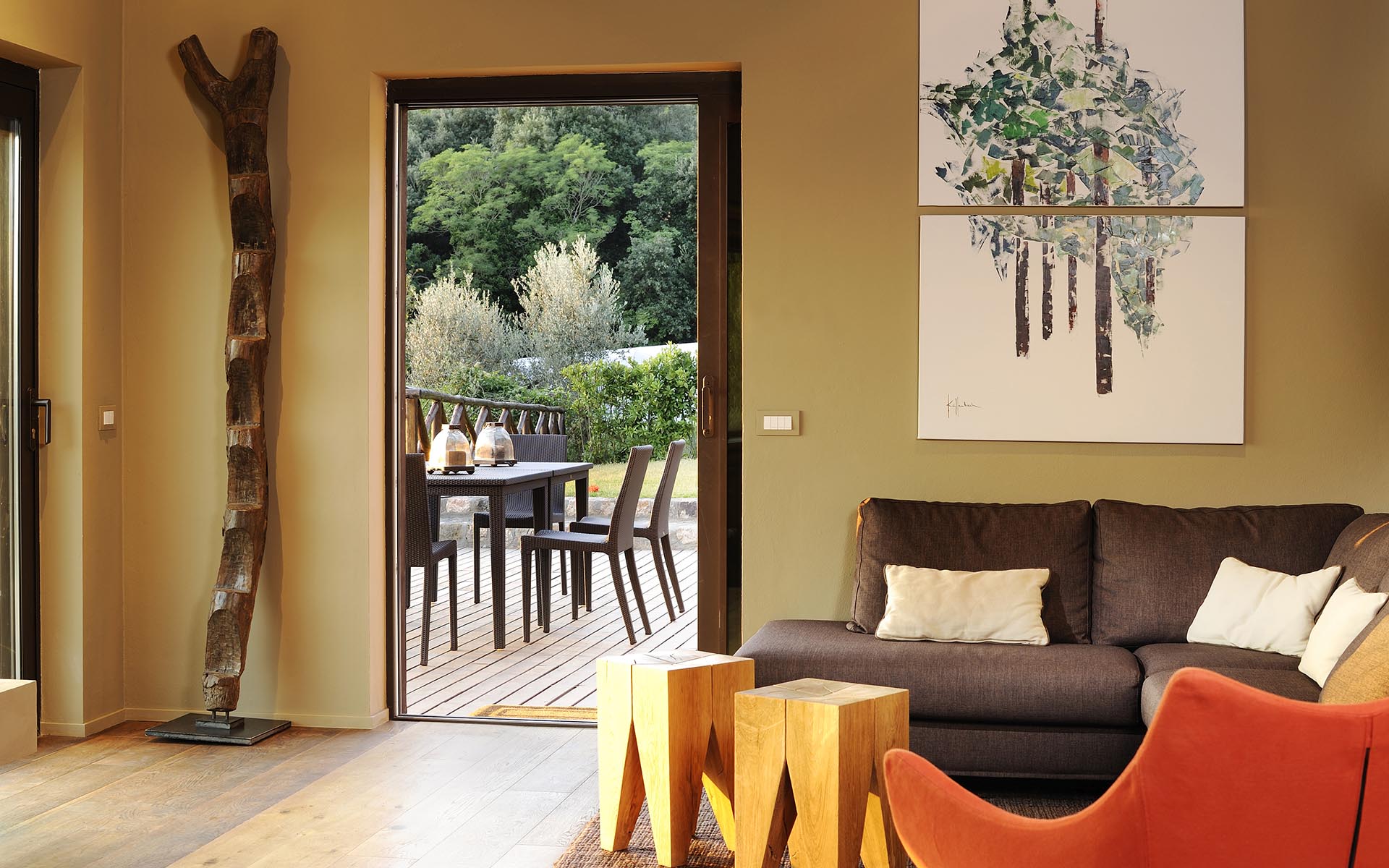 Relaxing, neutrally decorated living rooms with picture windows, wood floors and a modern fireplace for any evenings with a bit of a chill, are ideal spaces for sharing with friends and family.