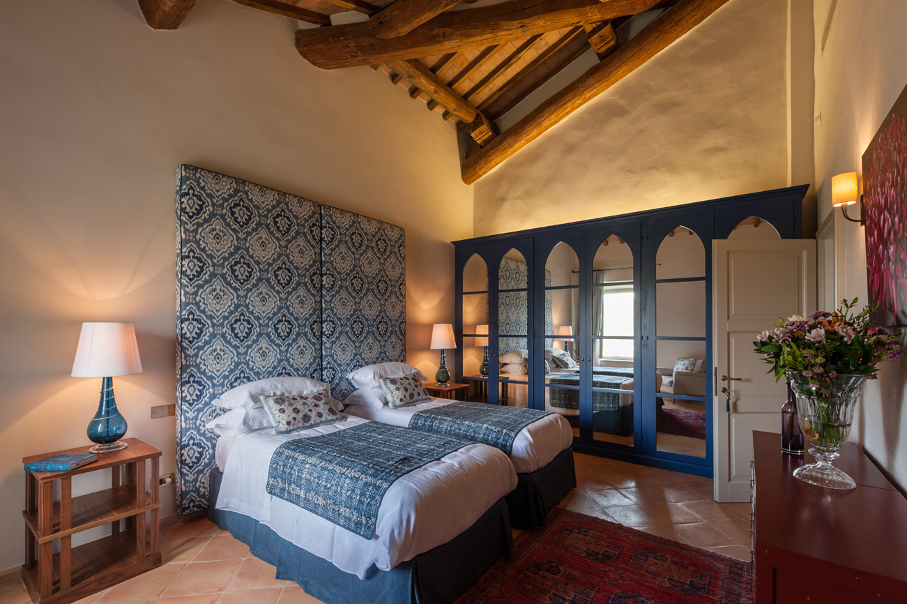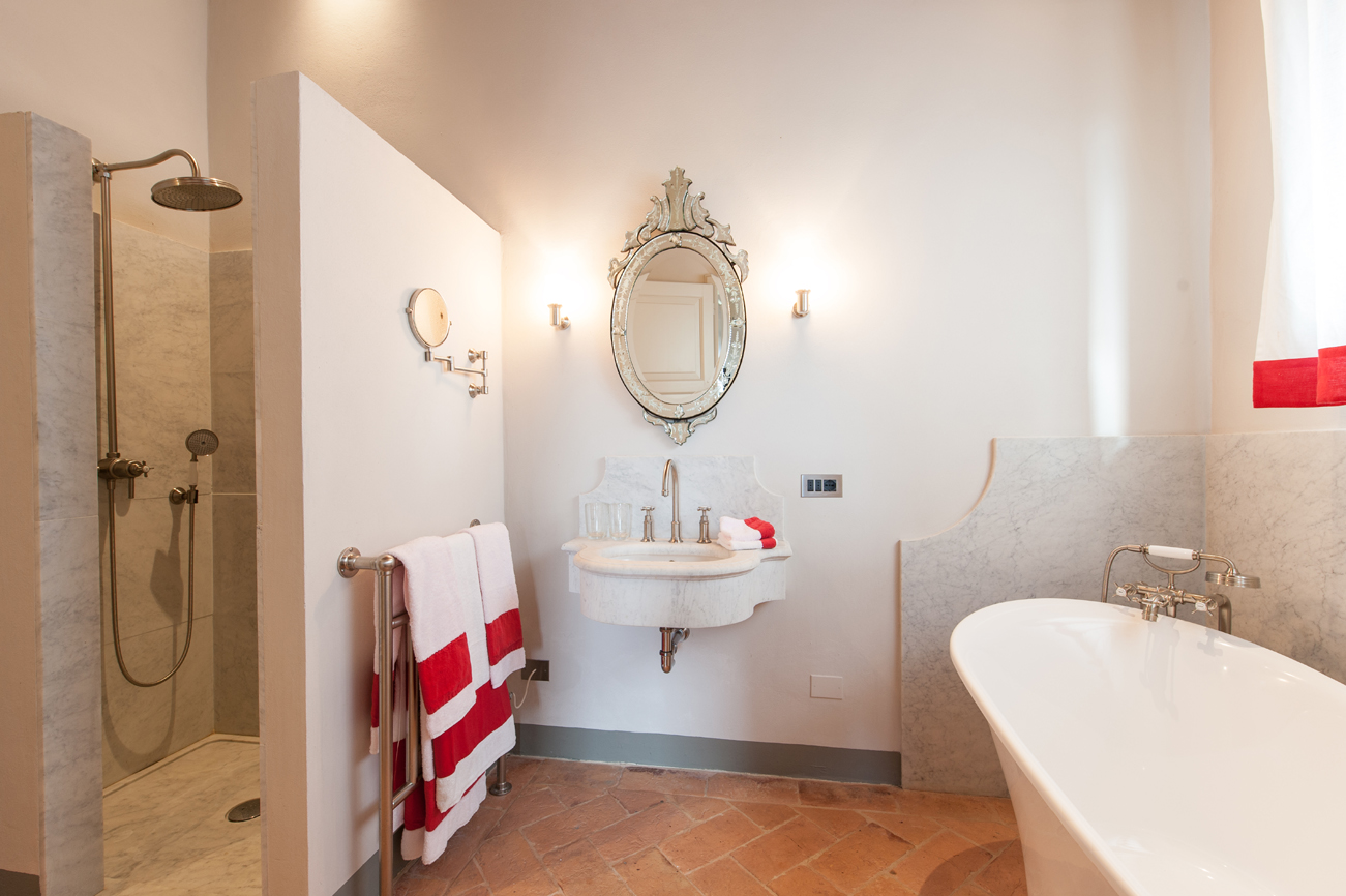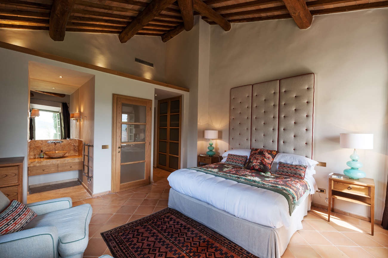 Feeling energised? You might venture into the private, mirrored gym with stunning views. You’ll also have exclusive access to Villa Balbina’s private wine cellars. This luxury villa’s spectacular indoor dining area, seating 14, is ideal for enjoying a traditional Tuscan feast. Or for al fresco dining, you may prefer to dine under the beautifully lit pool side pergola or try your hand at making your own pizzas in the outdoor wood-fired oven on your luxury villa holiday, before heading to your private suite for the night, with luxury en-suite bathroom.