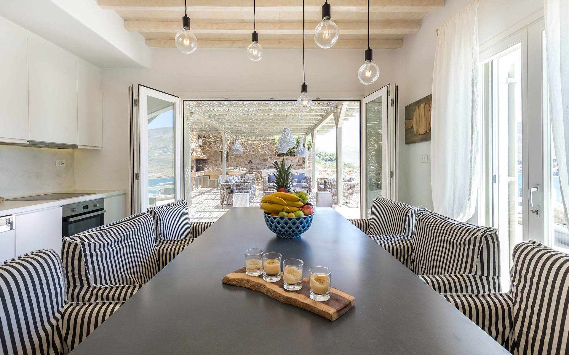 When it comes to dining areas, you’re also spoilt for choice. Perhaps a low-key breakfast with a view outside your bedroom, followed by a quick lunch by the pool, and then dinner at the large outdoor dining table. Once you’re suitably full of Greek goodness and the sun has set, wind down on the outdoor sofas and stargaze with a drink or two.
