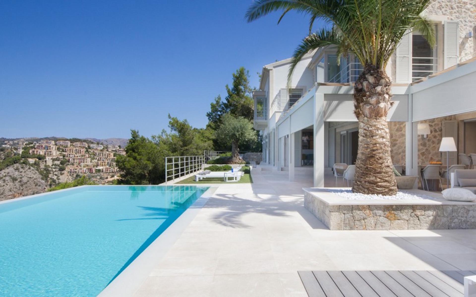Situated in the stunning south west corner of Mallorca, this magnificent villa, carved into a dramatic hillside, is as classy a holiday home as you’ll find.
