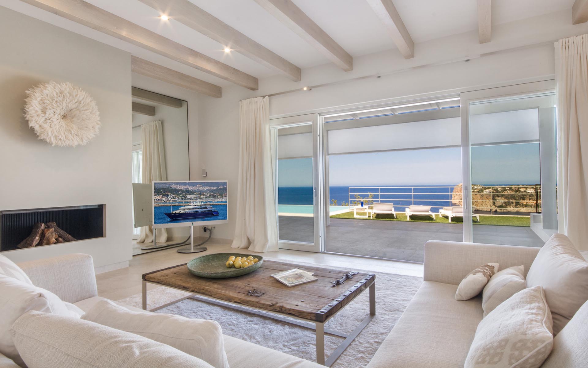 Embellished in pale wood and local stone, the interior of the home is light and airy. The white, wooden ceiling beams in each room are a lovely feature and make it even homelier. Adorned with local artefacts and stylish furniture gives the villa a warm and down to earth feel.