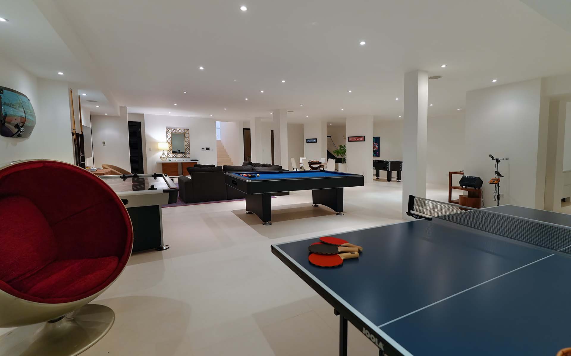 This luxury villa’s real treat, however, is its uber-modern and superbly equipped games room. The games room has everything from an electron air hockey table, to 8-ft billiards table, to table tennis to Arcade basketball net, as well as stacks of other games suitable for all ages.