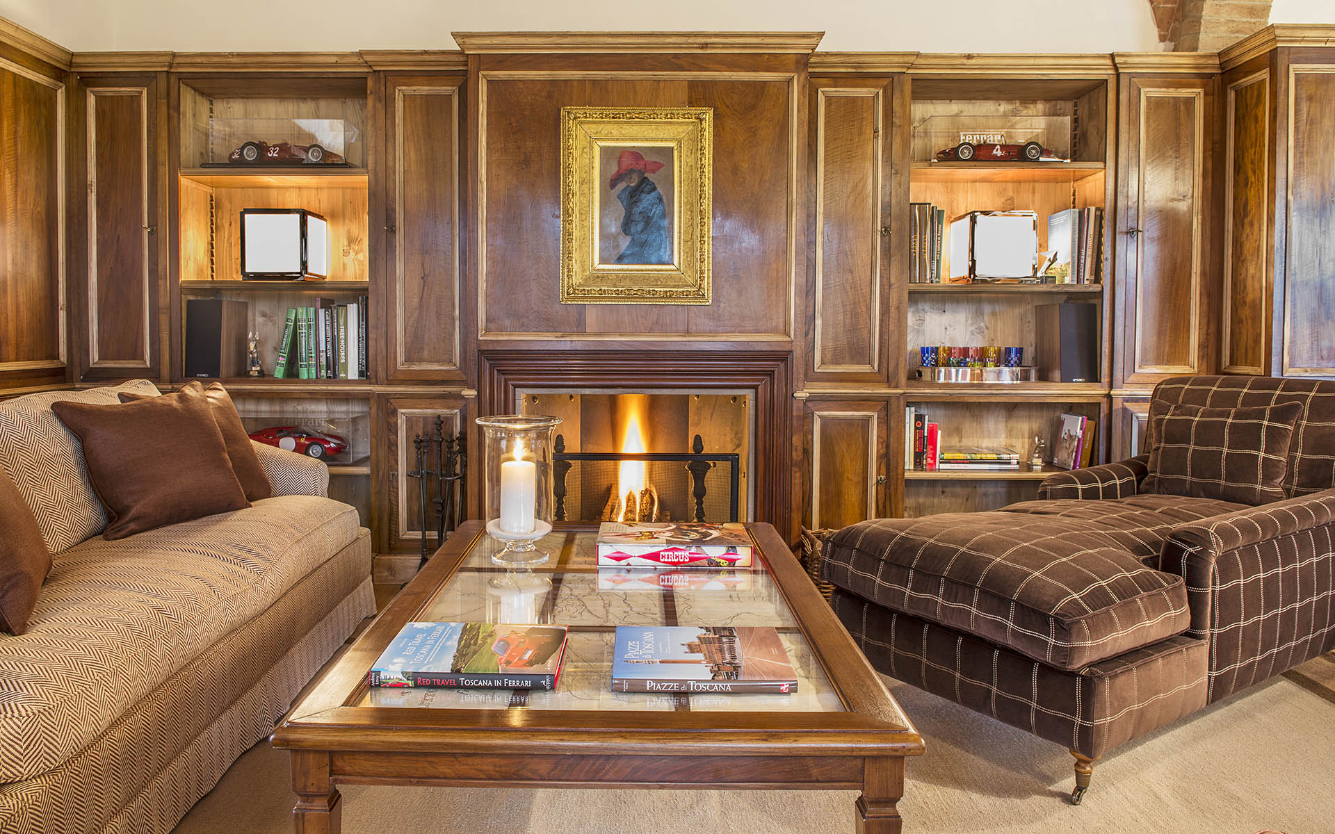 In the sophisticated living and dining areas, the vaulted brick ceiling and traditional Tuscan fireplace take centre stage, setting a tone of rustic sophistication for the whole property. A state-of-the-art TV room means you can all gather together for a film night, and gives children a space to escape to while the adults enjoy evening drinks and canapés, perhaps.
