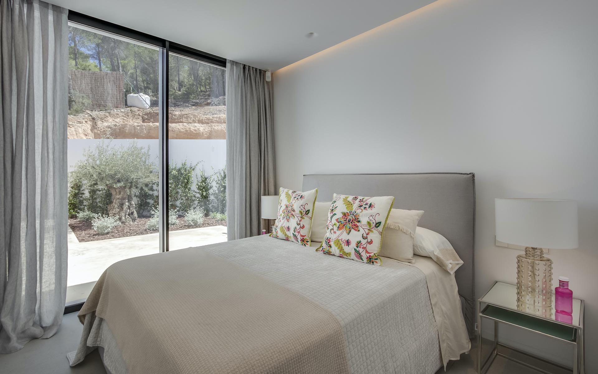 Each of the five bedrooms offer supreme levels of luxury and comfort and, through the magnificent floor to ceiling doors, present buena vistas across the Mediterranean beyond or into the depths of the pine forest, creating a botanical feel to the bedroom.