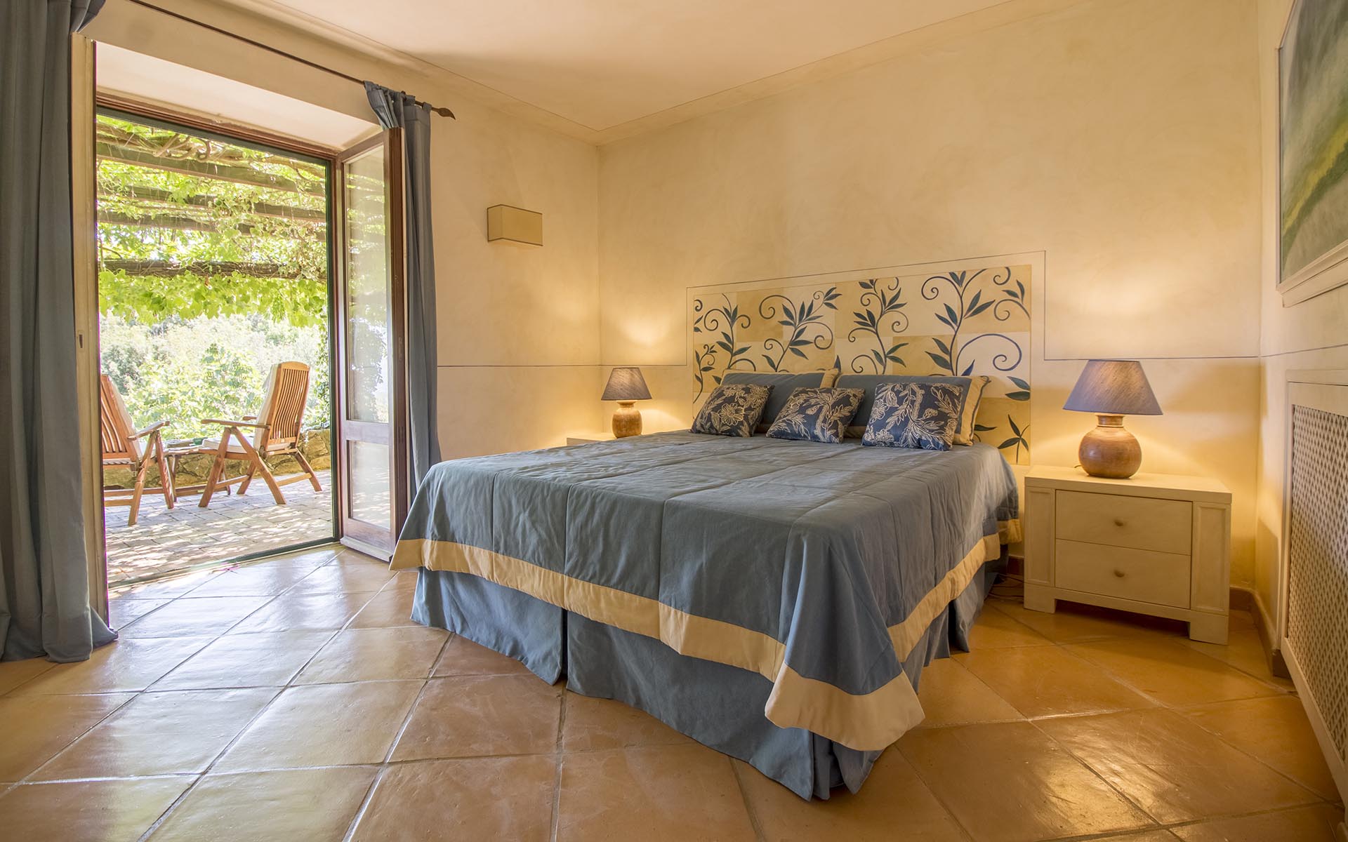 This luxury Tuscan villa is perched on the side of a hill beneath a vineyard and olive grove in the town of Porto Ercole in Argentario. It has views out over the beach, yacht club and lagoon.