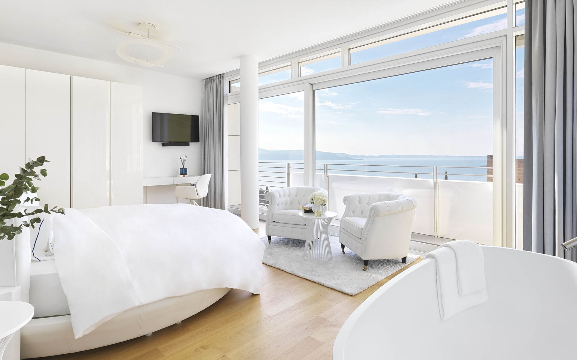 Villa Richard Meier is modern, light and airy. The elegant décor and chic white furnishings exude relaxation and create a striking contrast with the dazzling lake and lush mountains beyond the floor-to-ceiling windows. Step outside to the spacious terrace and you’ll realise just how special the views are here – you even have a lake view from your private infinity-edge swimming pool.