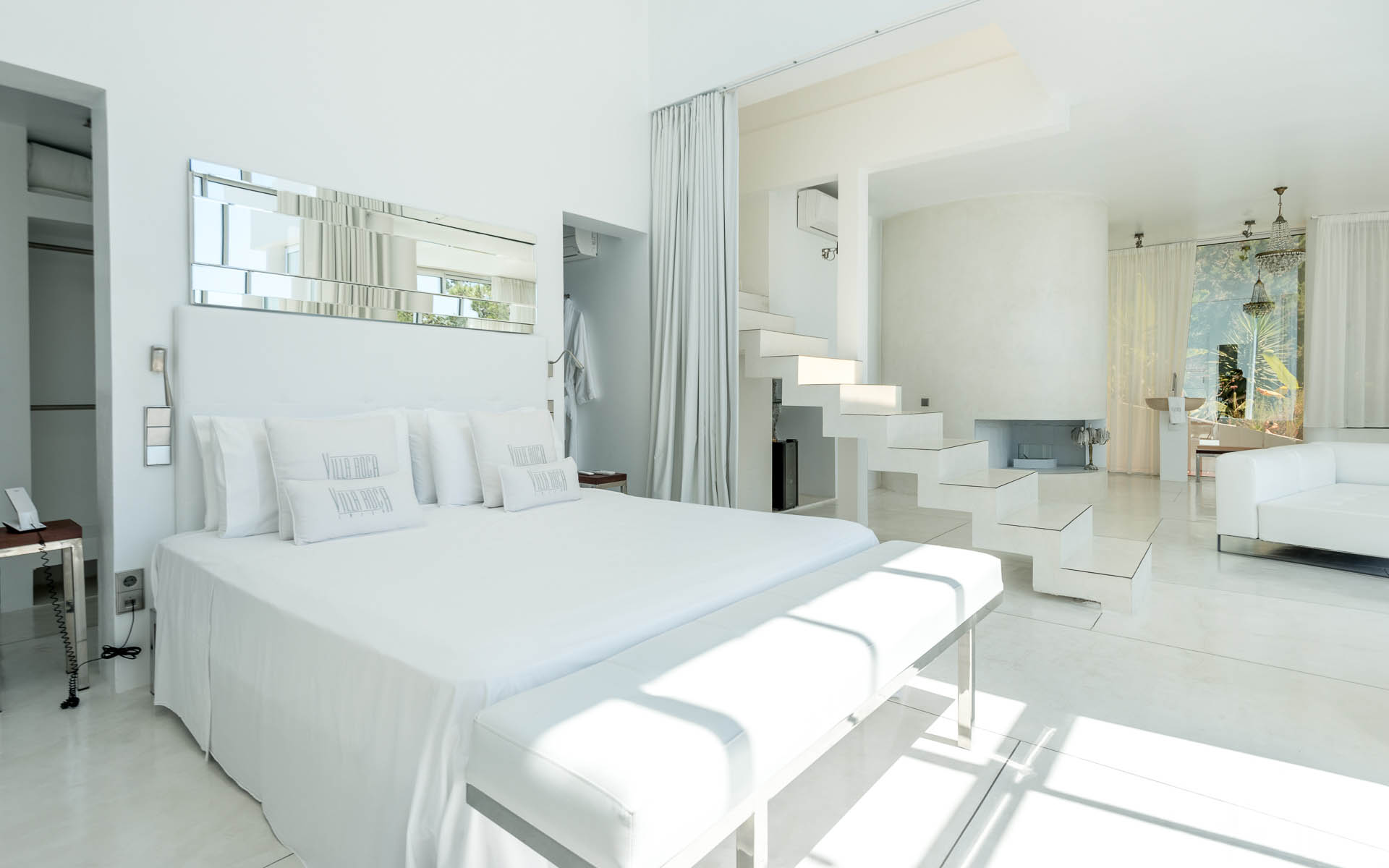 In fact, why bother going out to Ibiza’s legendary nightclubs when you have the best and most exclusive club right here. And you are in charge of the guest list. You can play your favourite tunes and relax on the roof terrace or beside the pool. Delicious aromas waft up from the two BBQs and steam rises from the oversized Jacuzzi as the butlers pour your drinks.
