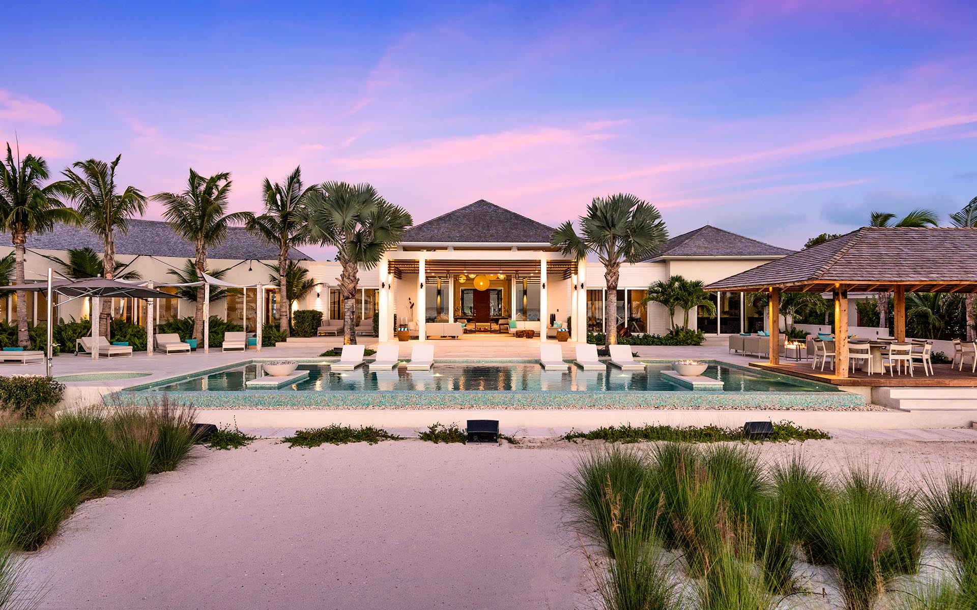 This luxury villa in the Turks and Caicos island sits right on the beach on Grace Bay, Leeward, with its own private stretch of sand.